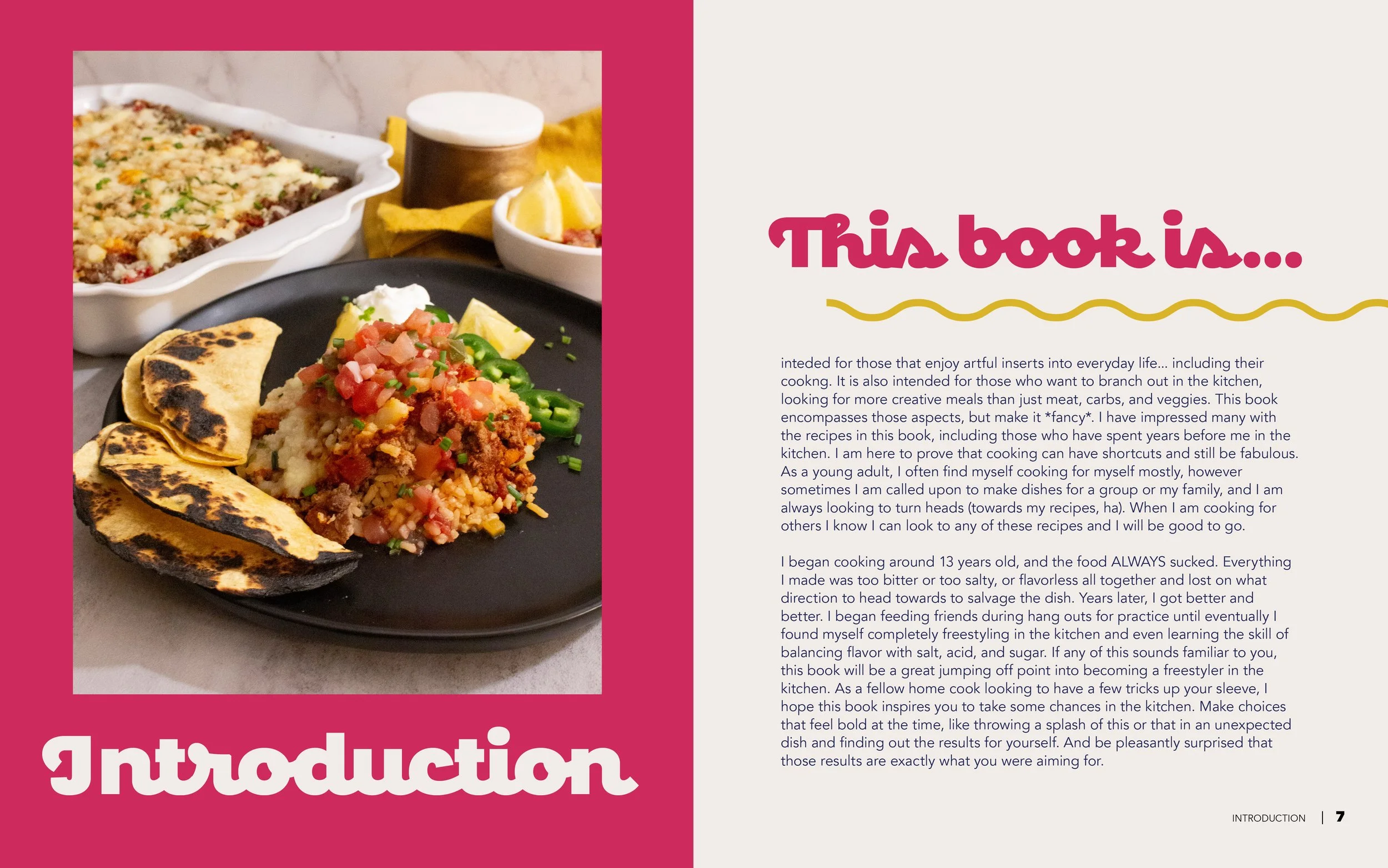 For my senior capstone project I created a 66 page cookbook with original recipes, cover designs, marketing posters, and photography using Adobe Suite. The book was sent to production to be bound in hardcover while following necessary parameters needed for production such as color profile, bleed settings, etc. This project fed my passion for cooking as well as design for print production!