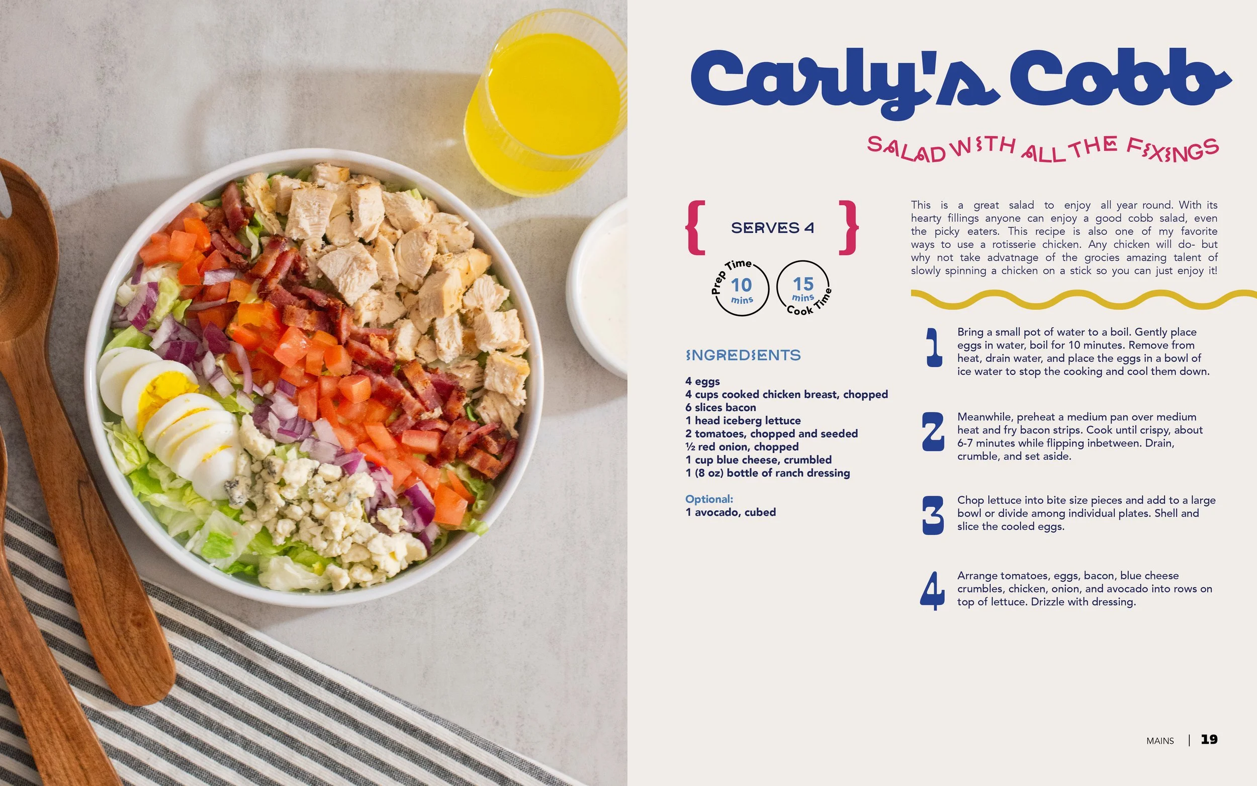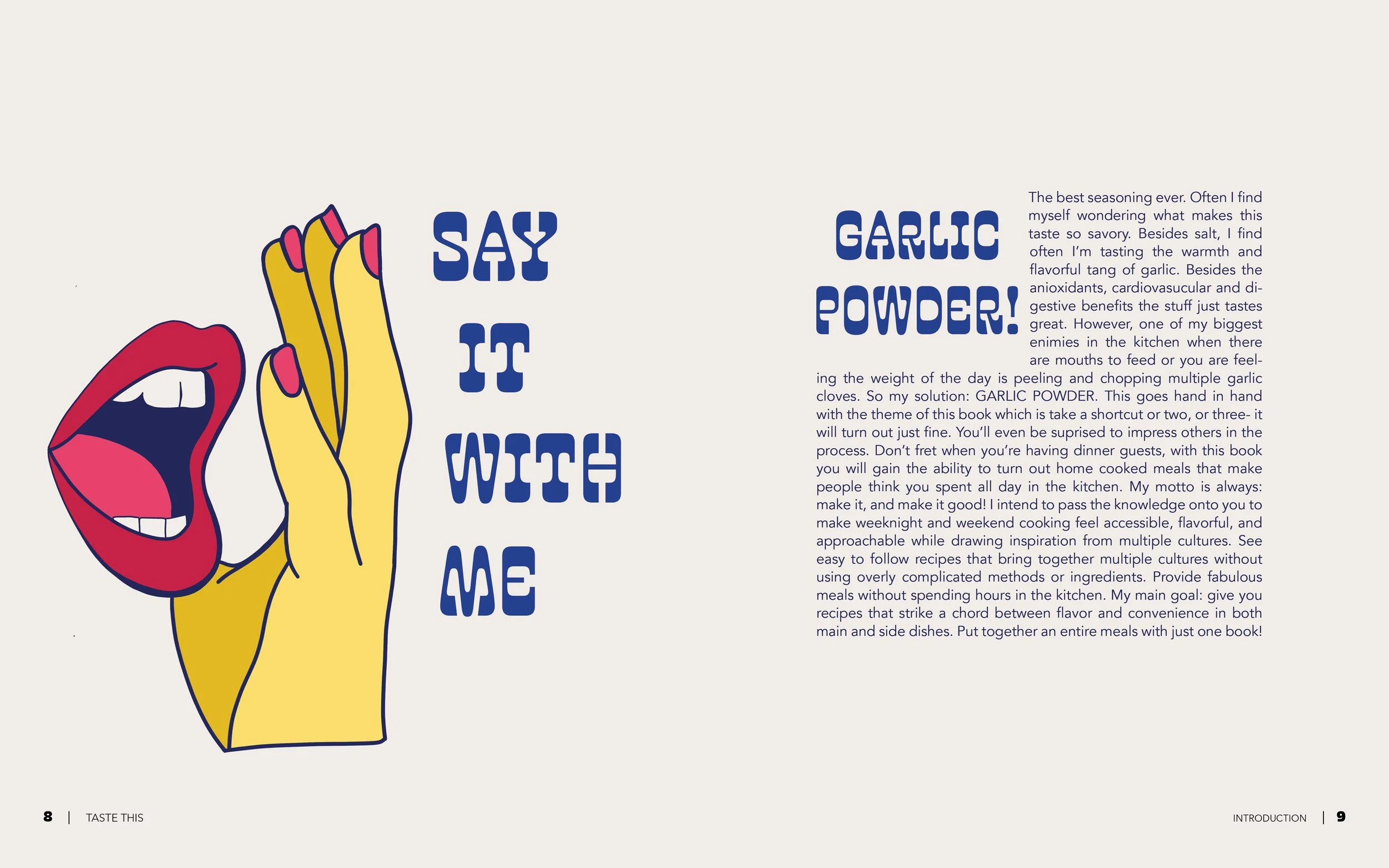 Using the publications determined color pallete I illustrated a cover that I aimed to have a lot of breathing room via white space while giving a vintage- modern feel. I wanted the cover to feel just as simple as the recipes inside.
